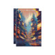 Essas etiquetas apresentam um design de arte surreal com cores vibrantes, mostrando prédios empilhados e casas em estilo caprichoso e imaginativo. Perfeito para capturar o encanto da arquitetura do sonho