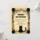 This beautiful, editable invitation features the details of the event surrounded by a frame of grey vines and black flowers. At the bottom is a black cat. On the back, is an editable field for additional information. The text on both sides is editable, so go ahead and change the details as well as the font style size and colour. The background colour on the back can be changed, too.