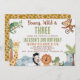 Cute modern safari themed third birthday invitation featuring various jungle animals and some trees. This young, wild and three 3rd birthday invitation id fully editable and can be used for any age.