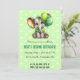 This sweet, editable birthday invitation features an illustration of an elephant holding two balloons against a light green heart background. The details of the event are below. On the back is a field for additional information. The text on both sides is editable so go ahead and change the details as well as the font style, size and colour. This versatile invitation can be used for any children's birthday milestone, baby showers etc.
