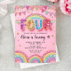 Convites Editable Pink Rainbow Sequin 4th Birthday Invitati