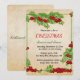 This beautiful, editable invitation features the details of the event surrounded a frame of red berries and green branches. The details of the event are in the middle against a brown paper background. On the back, is an editable field for additional information. The text on both sides is editable, so go ahead and change the details as well as the font style size and colour.