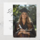 The front of the invitation features an allover photo template, allowing you to personalize it with a cherished image from your academic journey. Whether it's a formal graduation portrait or a candid shot with friends, this feature transforms the invitation into a keepsake that captures your unique story. The modern design elements are thoughtfully arranged to create a cohesive and visually appealing composition. The sleek lines and clean layout evoke the elegance of a glossy magazine spread, making your invitation a standout piece.