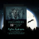 Noite iluminada pela lua assustadora iluminando uma árvore cercada por morcegos inchados no dia 50º Convite de aniversário do Halloween.