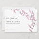 Casamento botânico moderno salve a data em pura coloração d'água pastel Burgundy mostra folhagem tinto de vinho do lado esquerdo moldando seus nomes e detalhes do casamento. A parte de trás do convite apresenta a cor da Borgonha coordenada. Este item faz parte de uma coleção de IPnk etéreo, visite nossa loja. Podemos alterar cores, fontes e muito mais para tornar seu design exclusivamente pessoal Para obter ajuda ou solicitação personalizada, entre em contato conosco através da loja ou escreva em citronelladesign@gmail.com