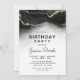 Ereal Mist Ombre Black Watercolor Moody Birthday Design com pintura manual de cor d'água, mistura de textura de fundo, linhas de visão de folha de ouro e trilhas de pontos e bordas confetti. Uma tendência e moderna Procure qualquer estação, com uma paleta de cores suave e sonhadora: Preto, Cinza, Branco e ouro, com uma letra chic popular de pincel Script Font - Convidados de Festa de aniversário Personalizados! Verifique meu compro para ver a suíte de casamento inteira para este design!