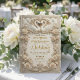 Anuncie sua união de gala com elegância atemporal. Este design tradicional apresenta trabalho de enrolagem ornamentado e um brasão régio para uma primeira impressão sofisticada.