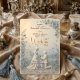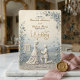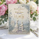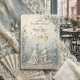 Compartilhe sua história de amor com um design romântico inspirado no vintage, apresentando uma paleta elegante de azul empoeirado e marfim, flores 3D falsas e tipografia clássica. Esta composição clássica centra uma cena de pedido de casamento lindamente enquadrada contra uma paisagem rural ondulada, renderizada inteiramente em tons suaves de marfim, creme e azul-ardósia suave. O layout utiliza hierarquia formal, colocando caligrafia moderna impressa graciosamente sobre uma borda floral esculpida simulada, criando a ilusão visual de luz direcional atingindo intricado trabalho de gesso em baixo-relevo. Esta é uma imagem impressa plana com efeito de relevo 3D falso e efeito de folha de ouro falso, não material real elevado.