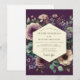 This design showcases a deep eggplant and plum color palette, accented by teal and sage foliage. Large, velvety roses and delicate anemones create a moody and romantic atmosphere. The dark background highlights the watercolor details of the floral arrangement. This aesthetic is ideal for a sophisticated autumnal or winter event.