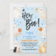 Ei, Boo! Um convite de aniversário azul de Halloween para uma festa de aniversário de Halloween! Apresentando ilustrações fantasmas bonitas e tipografia divertida.