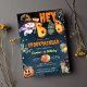 Ei, festa de aniversário de convite para modelo de fantasmas bonitos no Halloween, descarregamento instantâneo, marinho azul estrelado, abóbora azul, morcego, casa assustadora.
