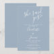 Este convite de festa de noivado azul empoeirado "ela disse sim" pode ser personalizado com os detalhes da sua festa de noivado. Criado por Thisisnotme©