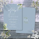 Este elegante convite para festa de noivado floral azul empoeirado pode ser personalizado com suas informações em tipografia quic com suas iniciais de monograma no verso. Projetado por Thisnotme©