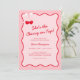 Celebre suas núpcias futuras com nossa Cherry Red e Rosa Personalizada no Topo do Chá de panela, perfeita para uma cereja no tema do chá de panela superior. Apresentando a frase "ela é a cereja no topo", este convite é ideal para um tema de chá de panela de cereja. Combinando temas de chá de panela com cereja, ideias de chá de panela de Namorados e um tema de chá de panela de Namorados, ela combina ideias de chá de panela rosa, um tema de chá de panela de arco, e um tema de chá de panela vermelho e rosa com uma reviravolta de tema chá de panela de coquete.