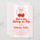 Celebre o amor e a alegria com este encantador chá de panela de cereja! Apresentando uma ilustração de cereja branca amarrada com um fundo arco e rosa, essa design é perfeita para um tema lúgubre e doce de chá de panela. A tipografia da na moda adiciona um toque retrô, fazer ideal para comemorações de temas retrorreflectores.