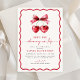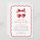 Celebrar a noiva com este convite "Ela é a Cherry no Top Chá de panela"! Apresentando cerejas doces em forma de aquarela amarradas com um arco de coquete e pop de cereja vermelha, este design lúdico é cheio de elegância feminina. A fronteira escalpada e os detalhes caprichosos o tornam perfeito para uma celebração divertida e na moda. Personalize com os detalhes do seu partido e dê o tom para um dia tão doce quanto a noiva!