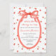Celebre sua amada com este convite de chá de fraldas, cheio de charme e talento de vintage. Este design, branco e coquete, apresenta cerejas de aquarela pintadas à mão espalhadas por um fundo de creme macio, aliadas a um arco de fita vermelho elegante e sobredimensionado no topo. Uma vibrante estrutura oval, pintada em um traço de cor vermelha cereja, que coordena a cor da água, desenhar atenção aos detalhes do chá, enquanto a escrita "ela é a cereja no topo" adiciona um toque divertido e feminino. A parte de trás do convite continua a história da design com listras de cor vermelha e branca, dando a ela uma doce sensação retrorreflectora inspirada em picnic — perfeita para um evento nostálgico estiloso. Este convite é ideal para chás de primavera e de bebês de verão, especialmente aqueles com um tema de fruta, festa de jardim de vintage ou salto feminino. Uma escolha encantadora para mães modernas que adoram detalhes ilustrados, designs ousadas mas elegantes, e um toque do estilo de coquete de moça francesa.