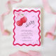 Este convite moderno, na moda, com quadros vermelhos e cor-de-rosa, ilustração de cereja com coloração aquática e texto personalizado constituiria uma maravilhosa adição para a celebração do seu chá de panela! Adicione facilmente seus detalhes clicando na opção "personalizar".