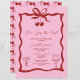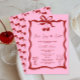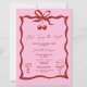 Celebre a noiva a ser com este chá de panela doce e na moda! Apresentando um design de cereja rosa e vermelha, este charmoso convite é adorável com um arco bonito, um bolo delicioso, e um coquetel festivo, definindo o tom perfeito para um evento divertido e elegante. O tema alegre da cereja continua com um padrão opcional de cereja em camadas atrás, acrescentando um toque de chorona. Totalmente personalizável com seus detalhes de eventos, este convite é perfeito para noivas que amam uma pop de diversão frutuosa e talento feminino. Quer você esteja hospedando uma festa de jardim, um brunch, ou uma família de coquetéis, esta design fará sua celebração especial. Principais recursos: - Fundo cor-de-rosa e gráficos vermelhos cereja que apanham os olhos - arco Adorável com cerejas e ilustrações de bolo e coquetel - Opcional design de trás com coleções cerejeiras - Texto totalmente personalizável para todos os detalhes do seu evento - Perfeito para chás de panela com um tema doce e na moda - Defina o tom para uma reunião memorável e imprima seus convidados com este design único. Peça agora e prepare-se para chá a noiva com amor!