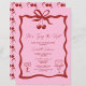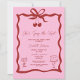 Celebre a noiva a ser com este chá de panela doce e na moda! Apresentando um design de cereja rosa e vermelha, este charmoso convite é adorável com um arco bonito, um bolo delicioso, e um coquetel festivo, definindo o tom perfeito para um evento divertido e elegante. O tema alegre da cereja continua com um padrão opcional de cereja em camadas atrás, acrescentando um toque de chorona. Totalmente personalizável com seus detalhes de eventos, este convite é perfeito para noivas que amam uma pop de diversão frutuosa e talento feminino. Quer você esteja hospedando uma festa de jardim, um brunch, ou uma família de coquetéis, esta design fará sua celebração especial. Defina o tom para uma reunião memorável e impressione seus convidados com este design único. Peça agora e prepare-se para chá a noiva com amor!