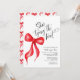 Ela é Chá de panela Casando de Arco Vermelho. Simples elegância. FRONT: Possui um arco vermelho estilo aquarela e um script de caligrafia manuscrito. Você pode mudar a cor do texto, incluindo a frase no topo. Voltar: Um padrão de arco completo. ©Kimbellish, LLC