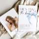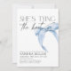 Este Chá de panela mínimo apresenta um arco de aquarela desenhado manualmente em azul empoeirado. O moderno tema "Ela é casando" é perfeito para um Partido Hen feminino, mas moderno. Na parte de trás você pode adicionar sua própria foto da linda noiva.