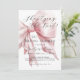 Simples e belamente feminino, esse chá de panela expele elegância mostrando um grande arco pastel cor-de-água rosa e luxuoso como sua peça central. O arco está ancorado e ligeiramente fora do centro, parecendo suave e fluindo com sombras delicadas, dando um efeito 3D. Ele se estende graciosamente através do convite simbolizando o ato do "casando". O fundo branco comum adiciona um estilo de simplicidade e sofisticação. Um emparelhamento de fontes do moderno guião manuscrito e do sorif elegante apresenta seu texto de forma magnífica. Simplesmente personalize o modelo com os detalhes do evento.