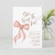 Ela é Casando Arco Rosa-Rosa-Rosa-Blush. Simples elegância. FRONT: Possui um arco cor-de-água fofo, cor-de-rosa pincelado e um script de caligrafia manuscrito em castanho. Você pode mudar a cor do texto, incluindo a frase no topo. Voltar: Um padrão de arco completo. ©Kimbellish, LLC