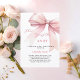 Um fundo branco elegante, decorado com um arco de cor rosa. Personalize e adicione um nome e detalhes da parte. Texto: Ela é casando.