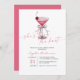 Caligrafia elegante rosa quente, chá de panela temático "ela é casando" com design de arco de aquarela.
