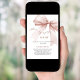 Um fundo branco elegante, decorado com arco dourado rosa. Personalize e adicione um nome e detalhes da parte. Texto: Ela é casando.
