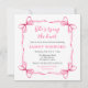Este chá de panela giro e caprichoso apresenta um bonito quadro de fita rosa. O texto combina o script manuscrito e as fontes sans serif para uma aparência na moda e moderna.