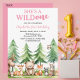 Ela é uma selvagem - Convite para primeiros aniversarios Woodland! Os animais de floresta costeira temem o convite para primeiro aniversario com ilustrações de um gambá, pomada, urso, raposa, guaxinim, rato, alce e coruja na cena da floresta. Animais divertidos e brincalhões fazem o convite perfeito para seu primeiro aniversario.