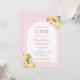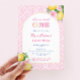 Este convite moderno de primeira festa de aniversário para uma menina é baseado em uma peça de palavras - "doce". O design apresenta uma forma de arco popular e frutas de citros, com realces florais cor-de-rosa contra um impressão de fundo rosa e branco feito de um azulejo de safra.