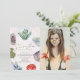 Este convite de fotos de aniversário da moça "ela é uma joia" apresenta um fundo de cor do arco-íris claro com cristais e pedras de gema cercados por falso/falso quadro geométrico dourado e borrachas. O verso apresenta um fundo púrpura leve e poeirento com padrões geométricos. Personalize-o para as suas necessidades. Você pode encontrar produtos correspondentes na minha loja.