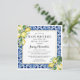 Quando ela descobriu que o tema principal do almoço com limão-limão é o chá de panela de verão perfeito. A fruta de citrinos legal e refrescante cria sempre belas exibições e refrescos. A coleção de limões da Jenny pega limões de aquarela e os emparelha com azulejos azuis mediterrânicos. Neste design, os azulejos criam um quadro azul. Uma fina armação de ouro a eleva. Dois buquês de limão adicionam um toque floral. Ela achou que o "Main Squeeze" está escrito no topo. O resto dos detalhes do almoço.