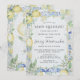Quando ela descobriu que o tema principal do Chá de panela de limão apertado é o chá de panela de verão perfeito. A fruta de citrinos legal e refrescante cria sempre belas exibições e refrescos. A coleção de limões da Jenny pega limões de aquarela e os emparelha com azulejos azuis mediterrânicos. Neste design, os azulejos criam um quadro azul. Uma fina armação de ouro a eleva. Os limões amarelos, as folhas verdes sábias e uma variedade de flores amarelas e brancas decoram a moldura azul. Ela achou que o "Main Squeeze" está escrito no topo. Seguem-se os restantes detalhes do chá de panela.