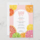 Fruta de citros brancos em limão, limão, pinks, coral, laranja e toranja vermelho rubi. As fatias desenhadas à mão dos citros incluem uma textura pintada a aquarelas para adição suculenta a um convite colorido ao chá de casamento.