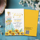 Um design elegante com noiva para estar num campo de girassol e uma caligrafia elegante.