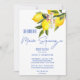 Ela encontrou seu modelo de chá de panela de limão apertado principal. Um monte de limões com flores de limão em aquarela, um simples design minimalista com guião azul moderno. Para as funções temáticas do Verão dos citros.