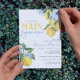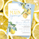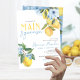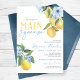 Elegante e Doce Aquarela, Ela Encontrou Seus Principais Convites À Noiva De Limão. Apresentando lindas elegantes ardentes ardentes ardósias, flores azuis e limões amarelos doces. Disponível impresso com envelopes ou para download digital de alta resolução. Fundo azul com limões e florais de cor aquática mais impressionantes.
