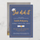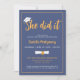 Ela Fez Isso Formando O Convite De Foto De Graduação Azul Com Boné.
