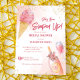 Ela foi esfregada em sorvete rosa e garrafa rosa de champanhe com modelo de convite para brunch de chá de panela de champanhe. Escrito casual moderno.