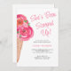 Este chá de panela com tema de sorvete bonito é decorado com florais de aquarela e um cone de sorvete. O texto diz: "Ela foi enfiada!" na tipografia rosa-na moda. Personalize esta placa adicionando as informações do seu chá. Original Watercolor © Michele Davies.