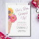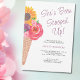Este chá de panela com tema de sorvete bonito é decorado com florais de aquarela e um cone de sorvete. O texto diz: "Ela foi apanhada!" na tipografia da na moda. Personalize este cartão adicionando as suas próprias informações de chá. Original Watercolor © Michele Davies.