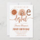Ela não é adorável, ela não é a maravilhosa Convidada de aniversário de sol do Boho Rainbow com a terra, com arco-íris e elementos de sol e estilo de fonte caligráfica?