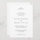 Convite de casamento elegante com um design simples e clássico com seu monograma no topo e seus detalhes de evento em fontes serif tradicionais.