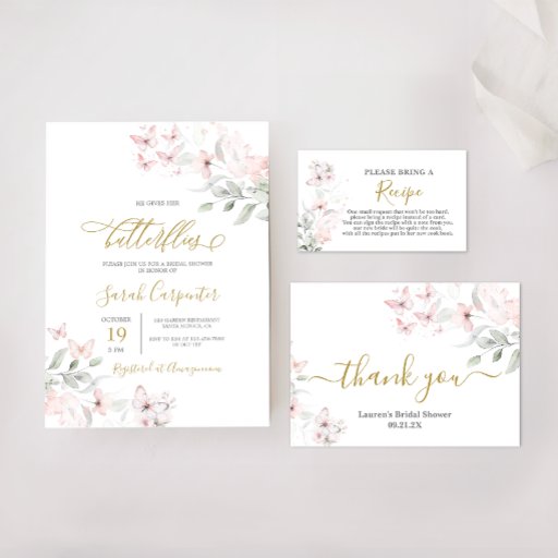Ele dá a ela chá de panela de borboletas, um convite para noivas florais elegante