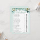 Apresentando "Ele disse, ela disse", a adição perfeita às suas festividades de chá de panela. Este jogo encantador terá seus convidados engajados e entretidos enquanto eles tentam adivinhar quem disse o que entre a noiva e o noivo. Com uma lista de perguntas personalizadas, este jogo promete risos, entusiasmos e competição amigável. "Ele disse, ela disse" apresenta um fundo branco intocado que define o palco para uma experiência de chá de panela e elegante. Adicionando um toque de frescura e charme, o jogo é adorado com uma borda verde suave que enquadra lindamente o conteúdo. No topo do jogo, você encontrará lindas flores verdes e brancas, evocando uma sensação de beleza natural e serenidade. A mesma fronteira saborosa agita a parte de trás do jogo, garantindo um design coeso e atraente visualmente. Como seus convidados leem as perguntas personalizadas, eles terão que usar sua intuição e conhecimento do casal para determinar se a declaração foi feita pela noiva ou pelo noivo. Para marcar sua escolha, os convidados circularão o vestido de noiva gracioso se acreditarem que a noiva disse isso ou o smoking se pensarem que era o noivo. Este elemento interativo acrescenta uma excitante reviravolta ao jogo, encorajando conversas vivas e debates amigáveis entre os participantes. Projetado com conveniência em mente, "Ele disse, ela disse" fornece um espaço dedicado na parte inferior de cada carta para os hóspedes escreverem os seus nomes e acompanharem as suas respostas corretas. Esta característica não só acrescenta um toque de organização, como também promove uma sensação de competição amigável entre os participantes. Quem ganhará o título do campeão "Ele disse, ela disse"? Mergulhe num mundo de risos, memórias e revelações, à medida que as questões personalizadas revelam histórias e percepções únicas sobre o casal. "Ele disse, ela disse" é mais do que apenas um jogo — é uma oportunidade de celebrar o amor e o vínculo entre noiva e noivo, criando momentos inesquecíveis que serão apreciados por toda a vida. Transforme seu chá de panela em um evento inesquecível com "Ele disse, ela disse." Com seu elegante design branco, complementado por uma borda verde macia e lindas flores verdes e brancas, este jogo vai cativar seus hóspedes e criar uma atmosfera de alegria e entusiasmo. Prepare-se para uma jornada divertida e inesquecível enquanto você mergulha no mundo do "Ele disse, ela disse"!