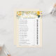 Apresentando "Ele disse, ela disse", o jogo de chá de panela perfeito para adicionar um toque de diversão e entusiasmo ao seu dia especial. Este jogo envolvente vai fazer seus convidados rindo e adivinhando enquanto eles tentam combinar citações com a noiva ou o noivo. Com uma lista de perguntas personalizadas, "Ele disse, ela disse" garante uma experiência memorável e divertida para todos os envolvidos. Esta versão de "Ele disse, ela disse" apresenta um centro branco intocado, fornecendo um cenário limpo e elegante para o jogo. A fronteira amarela suave adiciona um pop de calor e alegria, dando um tom alegre às festividades. Adorando o topo do jogo estão encantadoras flores amarelas e verdes, evocando um senso de natureza e beleza. A mesma fronteira encantadora está presente na parte de trás do jogo, criando um design coeso e visualmente agradável. À medida que seus hóspedes mergulham nas questões personalizáveis, eles serão desafiados a usar seu conhecimento sobre o casal para determinar quem disse o quê. Se eles acreditarem que a noiva disse as palavras, eles irão rodar o símbolo gracioso do vestido de noiva. Por outro lado, se pensam que o noivo fez a declaração, circularão o símbolo do smoking. Este elemento interativo acrescenta um elemento de concorrência amigável e provoca discussões vivas entre os participantes. Para tornar o jogo ainda mais envolvente, cada placa inclui espaço na parte inferior para os convidados escreverem seus nomes e acompanharem suas respostas corretas. Este recurso adiciona um toque de organização e permite que os participantes acompanhem seu progresso através do jogo. Quem será o campeão final do "Ele disse, ela disse"? "Ele disse, ela disse" é mais do que um mero jogo; é uma viagem encantadora de descobrir os caprichos, hábitos e sentimentos do casal. É uma oportunidade para os hóspedes se unirem, rirem e criarem memórias duradouras. Com sua design encantadora e perguntas personalizadas, esse jogo de chá de panela deixará uma impressão duradoura sobre a noiva e seus convidados. Elevem sua experiência de chá de panela com "Ele disse, ela disse." Com seu elegante centro branco, complementado por uma borda amarela macia e deliciosas flores amarelas e verdes, este jogo vai cativar seus hóspedes e criar uma atmosfera de alegria e riso. Prepare-se para uma celebração memorável e divertida enquanto vocês mergulham no mundo do "Ele disse, ela disse"!